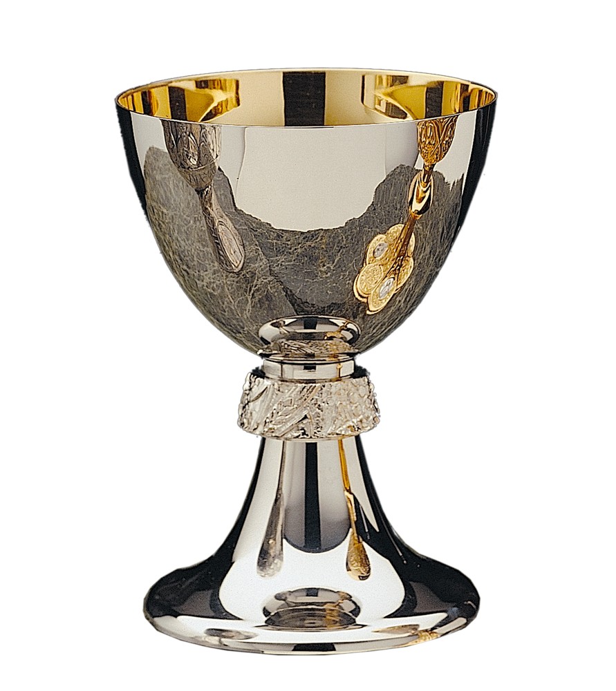 Cáliz realizado en acero inoxidable con nudo decorado.