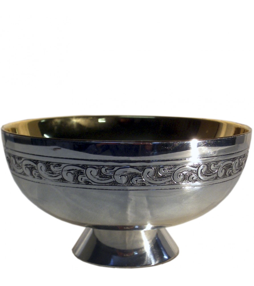 Patena copón realizado en metal plateado con decoración