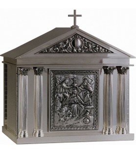 Sagrario en exposición con pequeños desperfectos en el baño de plata.
